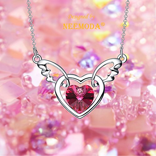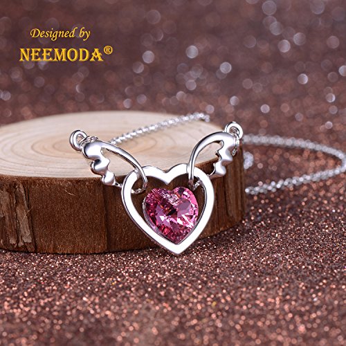 -. Title : NEEMODA "Angel Wings" Austrian Crystal Heart Pendant Necklace Eco-friendly Vacuum White Gold Plating