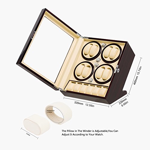 -. Feature : Powered with Japanese super slient motor no running noise. Nice looking, easy to operate. / 100% handmade and good value. The use of acrylic glass, environmental protection piano lacquer and transmission using copper fittings. Four turntables with PU soft watch pilow, smooth, atmosphere and quality with high-grade. / Watch winder motor have 3 direction settings (clockwise, counter-clockwise and alternating) and multiple Turns Per Day settings. / Four Program Settings: Mode 1 : 2mins CW, rest for 6mins, repeat. Mode 2 : 2 mins CCW, rest for 6 mins, repeat. Mode 3 : 2 mins CW, rest for 6 mins, then 2 mins CCW, rest for 6 mins, repeat. Mode 4 : 5 mins CW, 5 mins CCW, repeat above for 3 hours, rest for 9 hours, repeat. / Powered by 100-240v AC Adapter(included). 12-month Warranty, 7*24 friendly customer service.