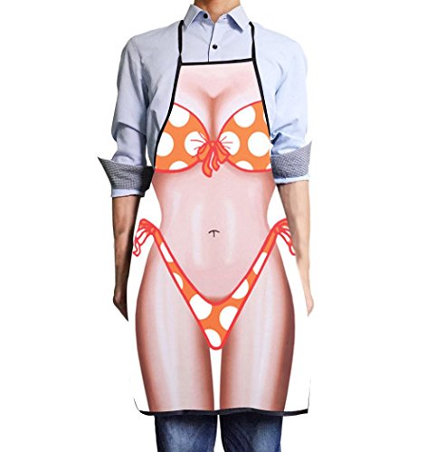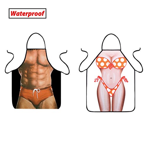 VIPbuy Set of 2 Pcs Waterproof Naked Man & Bikini Girl Aprons , Funny Sexy Kitchen Aprons for Couples Novelty Gifts