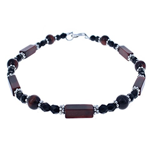 -. Binding : Jewelry -. Brand : Timeless-Treasures -. Department : womens -. Feature : Available Lengths: 9" - 12" / 100% Satisfaction Guaranteed / Ships from USA / FREE GIFT BAG WITH EVERY ORDER ! (Timeless Treasures ImP.R.Inted) -. ProductGroup : Jewelry -. ProductTypeName : FASHIONNECKLACEBRACELETANKLET -. Title : Ladies Black Czech Fire Polished Glass, Red Jasper & Sterling Silver Beaded Gemstone Anklet with Daisies