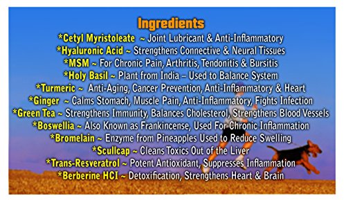 -. Feature : **PROFESSIONAL POTENCY To Maximize Pain Relief For Your Best Furry Friend / **ALL NATURAL ~~ NON-TOXIC For Dogs & Cats for Joint, Arthritis & Hip Pain / **FAST & EFFECTIVE - Without Harmful Side-Effects - Strengthens Immune System / ***MSM, HYALURONIC ACID, TURMERIC & MORE ~ Made in the USA / ** Goes Great With Dr. Valerie Nelson Arnica 1M For Pet Pain Spray ~ Order Today!