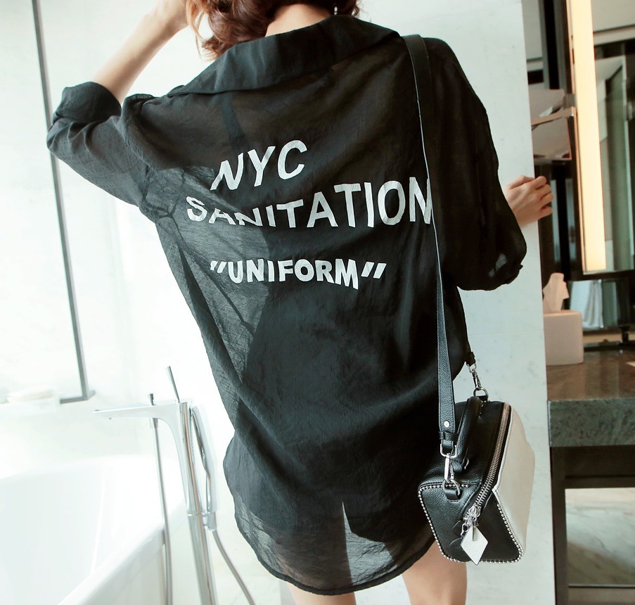 This is long shirt having unique printing and length until hip, emphasizing soft silhouettes and slim effect.