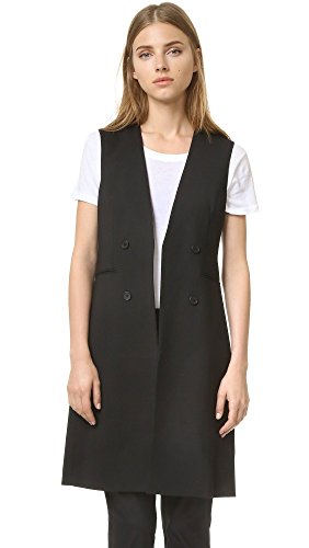 A sleeveless wool vest with button detailing at the waist and two slit pockets at the hips
