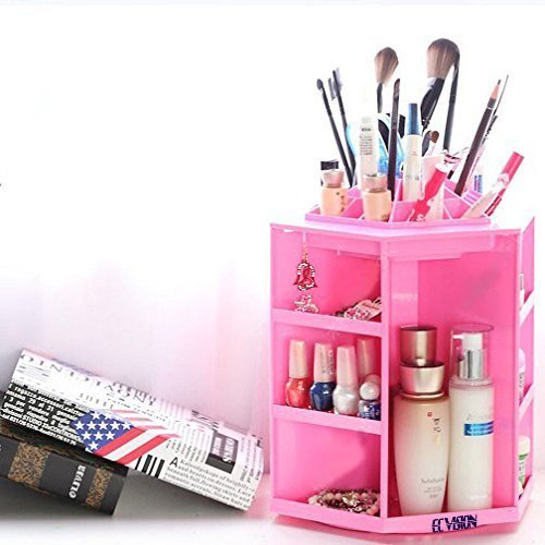 ECVISION Big Capacity Rotating Acrylic Cosmetic/Makeup Organizer/Cosmetics Storage (Pink)