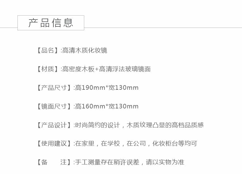 台式高清化妆镜 桌面美容镜子便携时尚随身简约单面大号木梳妆镜