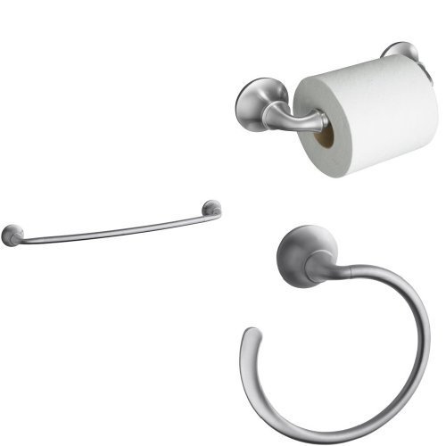 KOHLER Forte Sculpted 3-Piece Bath Accessory Set with 24 in. Towel Bar - Brushed Chrome