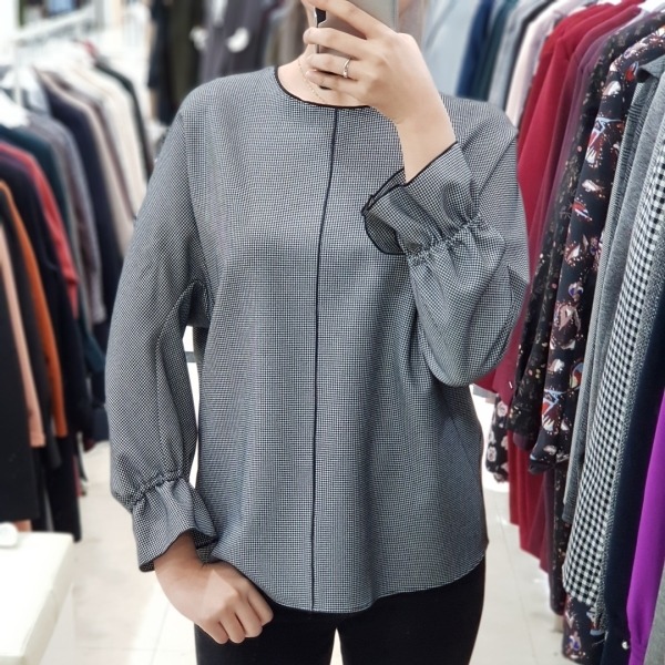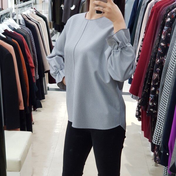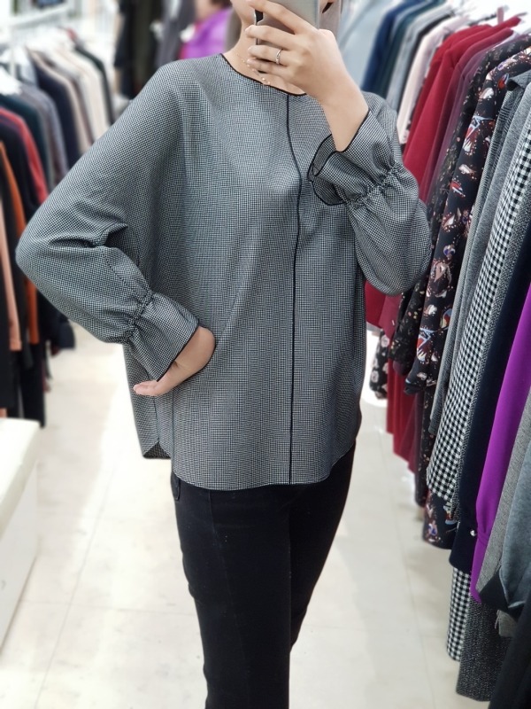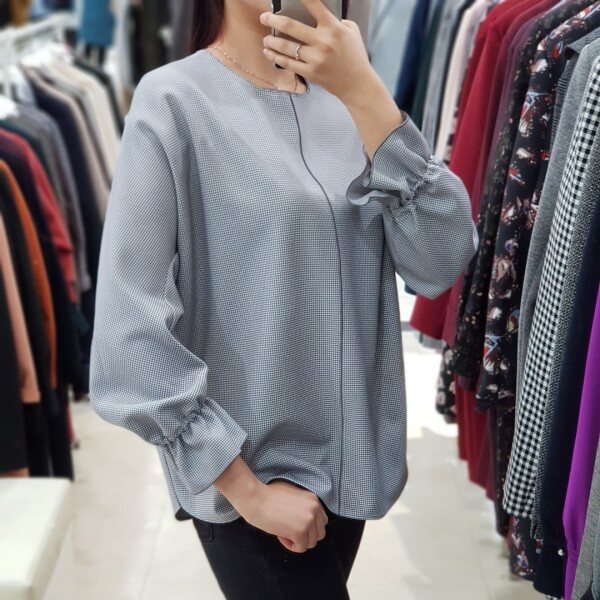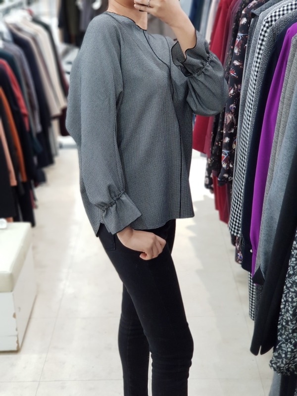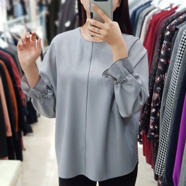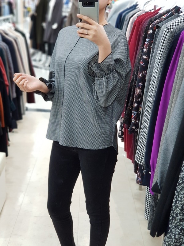 소매 라인에 밴딩 처리가 되어있으며, 프릴이 들어가 세련된 무드가 연출됩니다.고급스러운 체크 패턴으로 모던한 분위기가 돋보입니다.스판기가 적당히 함유되고, 나그랑 스타일로 편안한 착용감이 장점입니다.격식룩으로도 캐쥬얼룩으로도 적당합니다.슬랙스, 스커트와 모두 잘 어울린답니다!사이즈 55/66컬러 블랙/그레이