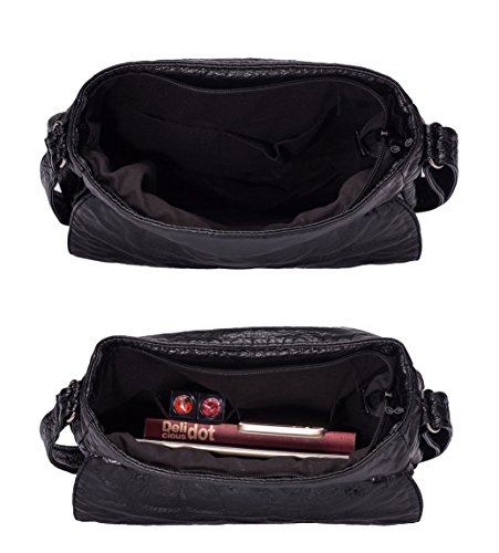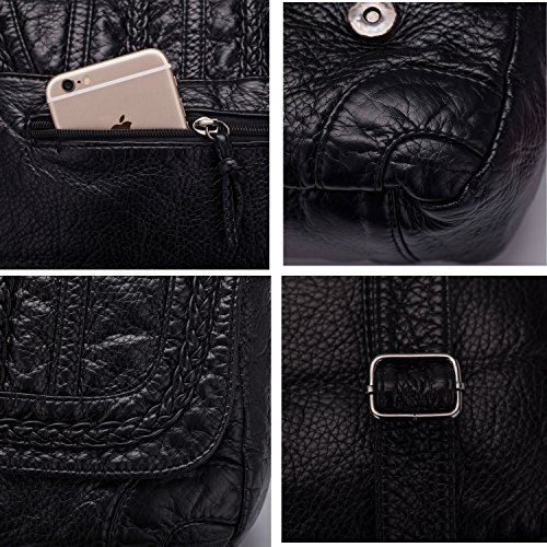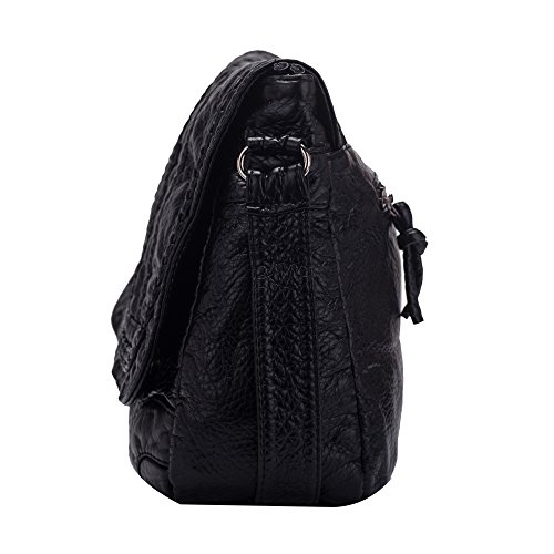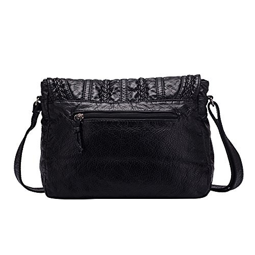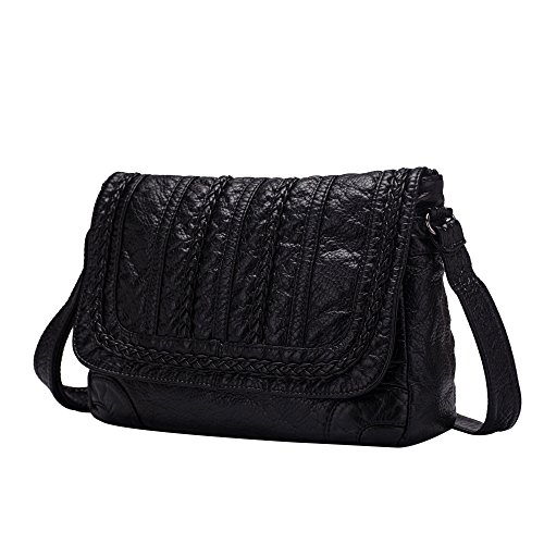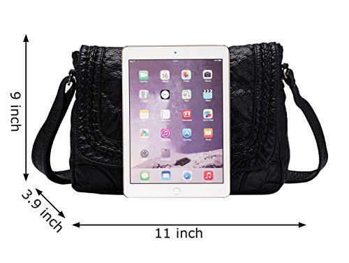 Women's Shoulder Bag Casual Purse Black Washed Leather Crossbody Bag for Ladies