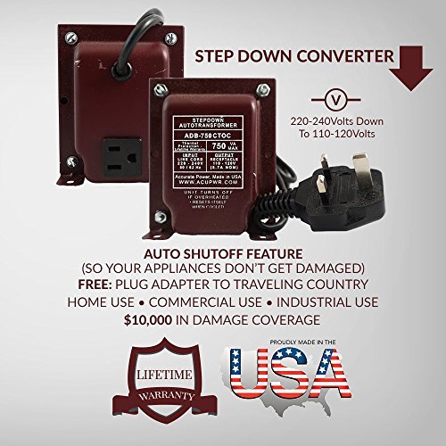 ACUPWR transformers are Designed and Manufactured in the USA using the finest materials and engineering. The ACUPWR ADB-750 is a Step Down transformer which is specially designed to let you use 110V appliances in 220V countries.