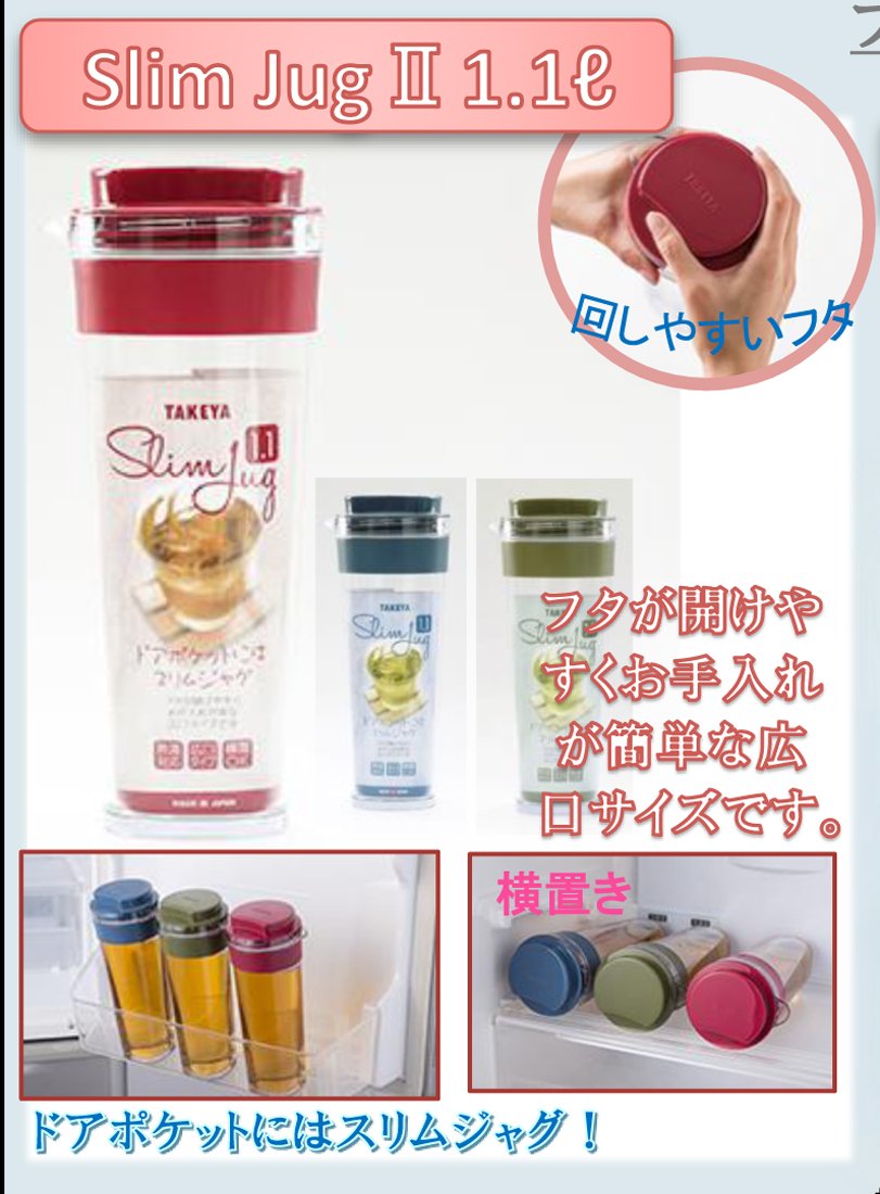 サイズ:幅11.2×奥行10×高さ26.5cm素材・材質:本体=AS樹脂 フタ・スリーブ=PP パッキン=シリコーンゴム生産国:日本容量:1.1L熱湯OK、縦置きも横置きもOKスリムコンパクトボディでドアポケットにもすっきり収納肉厚でガラスのような透明感と高級感クリアな本体で中身がよく見える広口でお手入れラクラク底面は角型なので安定感もバッチリパーツが少なく洗いやすい設計
