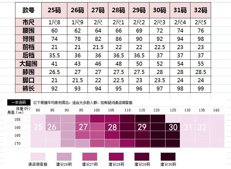 注意:此款裤子为标准尺码,妹纸们按照平时的尺寸选购就好。