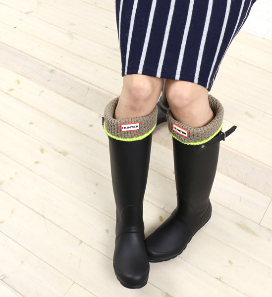 HUNTER(ハンター) ブーツ専用 ニット ネオンカラー フリースライニング ソックス “NEON TRIM BOOT SOCKS”・HUS26104 【実寸】M(UK3-5 22.0cm-24.0cm)(踵~履口まで31cm)【素材】本体:ポリエステル100%、カフ部分:アクリル100%