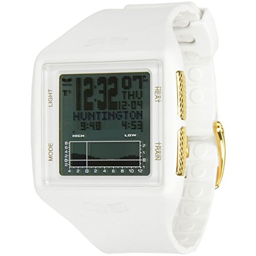 Studio : Vestal Publisher : Vestal Binding : Watch Product Description Vestal collections are watches, eyewear, softgoods accessories that fine-tune style and expression for the musically individual. Established in 1997, Vestal is marketed and branded through friends, musicians, artists, and athletes who are immersed within music culture. Vestal can be found in specialty stores and finer boutiques around the world. This is a strong, durable watch with a slight military inspiration. Dial makes it easy to tell time when in the concert tranches. Strong oversized buckle matched with leather and canvas for extra reinforcement. Rest assured wild fist pumps will not eject this watch. The Brig by Jordy Smith is a digital tide $ train watch that can track the tide at over 200 beaches worldwide for the next 20 years. It also offers a host of other high end features like a digital tide graph that features current tide height, quick access to Vestal's own custom training mode with "Suffer and Recover" interval timer, and Heat Mode with countdown timer. The watch strap is secured to your wrist with a new patent pending OKTOLOCK system.TH OKTOGRIP raised pattern on the underside of the band means significantly less rubber contact against your skin providing greater breathability, more flexibility, and a lighter feel on your wrist. Alarm Mode. Future Tide Mode. T1 T2 Time Tracking. 10 ATM/100 Meters Water Resistant. Unibody P Construction. Heavy-Duty Stainless Steel Caseback. Easy Access Battery Hatch. Case: PU Wrapped ABS Plastic 44mm Wide. Band: Polyurethane 24mm Wide. Buckle: Stainless Steel. Crystal: Hardened Polycarbonate. Movement: Custom Digital Tide/Train. Water Resistance: 10ATM/100 Meters. Wrist: Thick. 0