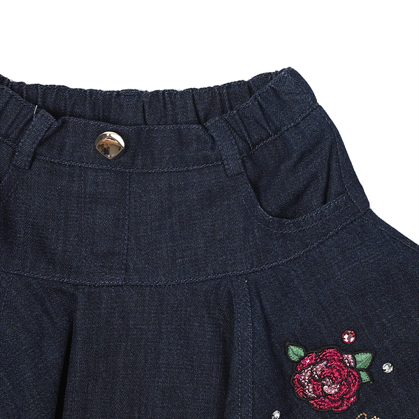상품설명 얇고 부드러운 소재로 된 데님 스커트로, 플레어 라인이 귀여운 느낌을 주고, 트렌디하게 장미 자수가 블링블링하게 포인트 되어 있어 어디에든 코디하기 쉽고 멋스러운 제품입니다.