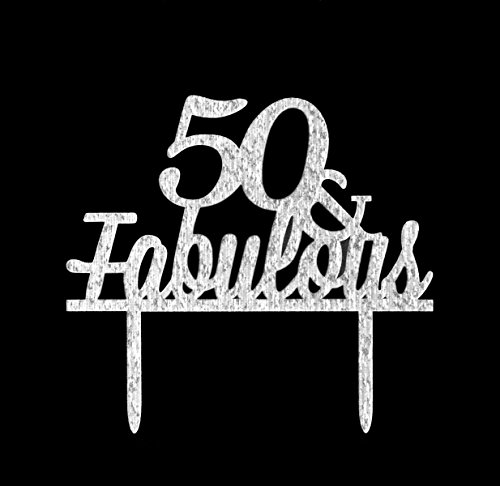 50 & Fabulous Cake Topper- 50th Birthday/ Wedding Anniversary Party Decor (Silver)