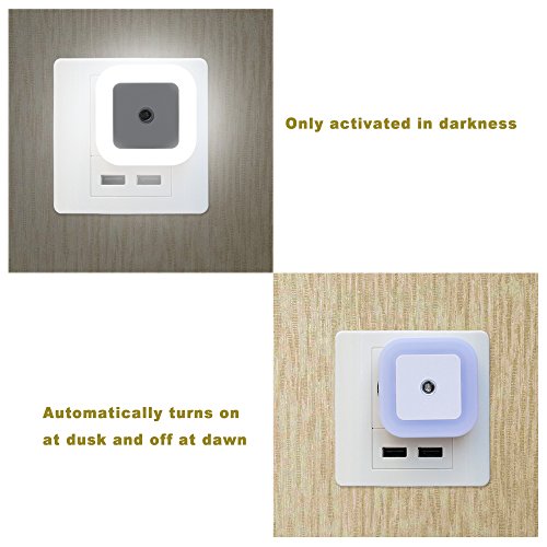 ✔[Smart Sensor On/Off] - These plug in night lights have built-in dawn to dusk smart light sensor, automatically turns the light on at dusk and off at dawn, light only activates in darkness, no on/off switch, save power and energy.