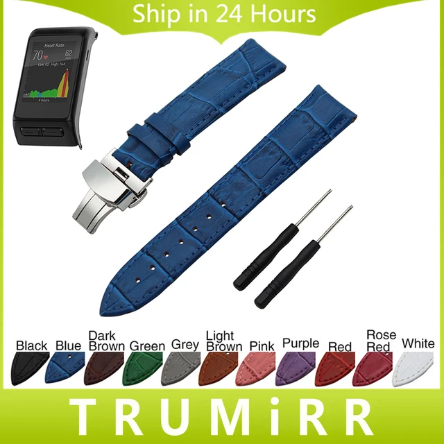 | [해외]24 미리메터 송아지 가죽 정품 가죽 시계 밴드 butterfly 버클 스트랩 garmin vivoactive 시간의 gps 스포츠 손목 벨트 악어 패턴 팔찌 |