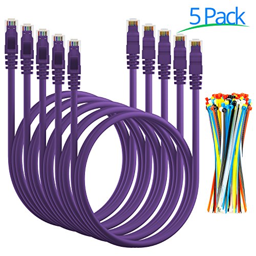 High Speed Cat6, 5 Ft Ethernet Cable 24 AWG, Snagless RJ45 Ethernet Patch Cable provides connectivity for LAN network components such as PCs, computer servers, printers, routers, switch boxes, network media players, NAS, VoIP phones, PoE devices, and more;