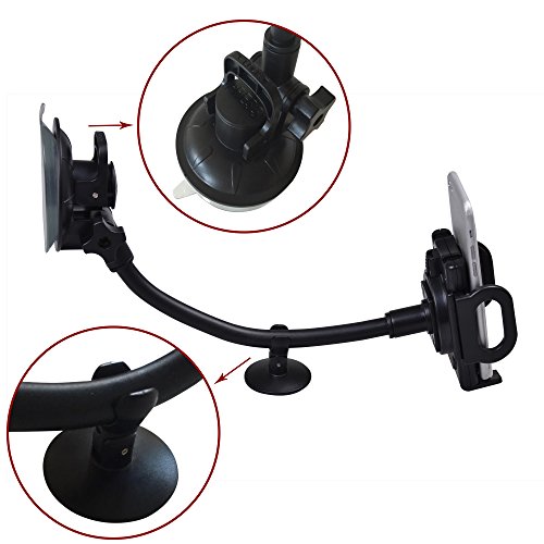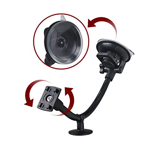 STRONG SUCTION CUP - Silica gel vacuum suction offers reliable strength for effortlessly mounting your device firmly and securely to the windshield with its locking mechanism. Removal is a breeze with an added silica arm to help release the suction cup. PLUS, additional support is provided with a bracket that holds the arm like a crutch on the dashboard for a more steady undergird.