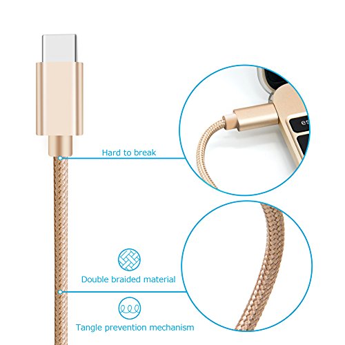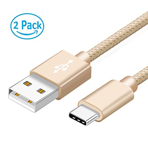 USB Type C Cable, FEEYOO USB C to USB A 3.0 (2-PACK 6.6ft) Nylon Braided Fast Charging Sync Cable For Macbook, Google ChromeBook Pixel, Nokia N1 Tablet, Samsung Galaxy S8/S8 Plus and so on.(Gold)