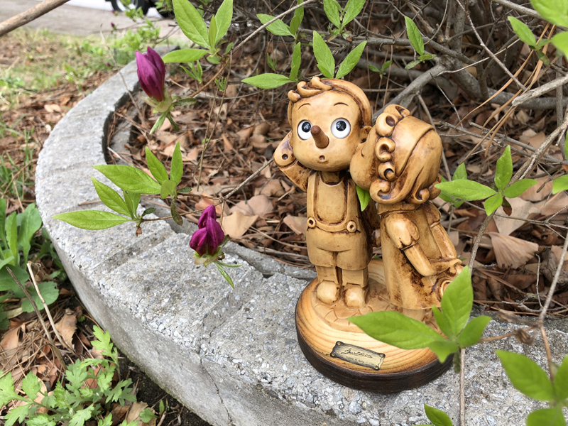 Pinocchio made with an original blend of wood and resin. Each piece is hand dyed and assembled by our artisans. The cracks in the base are the natural result of the ageing of the fir, and each piece is unique and different.