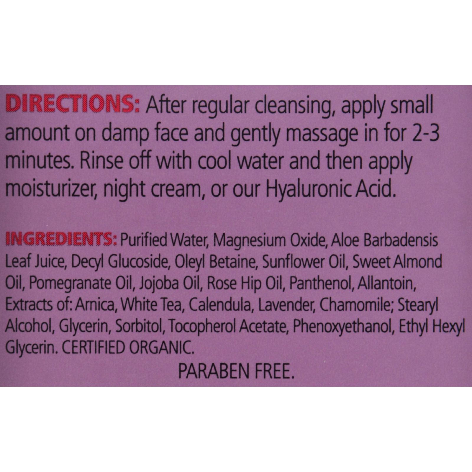 Cleanses in depth but gentle enough to use on even sensitive or acne skin. Free Of Parabens, animal ingredients or testing. Disclaimer These statements have not been evaluated by the FDA. These products are not intended to diagnose, treat, cure, or prevent any disease.Ingredients : Purified water, pentaerythrityl tetracaprylate caprate, cetearyl alcohol, sorbitol crystalline magnesium oxide, vitamin E acetate, aloe extract, polysorbate 20, potassium sorbate, sodium benzoate, citric acid. Size : 2 OZ Pack of : 1 Product Selling Unit : each |
