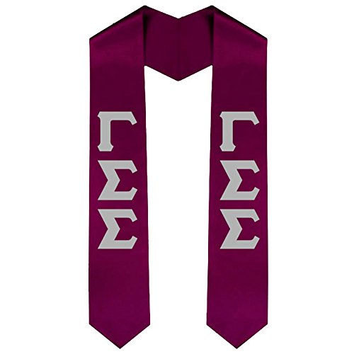 Binding : Apparel Product Description Gamma Sigma Sigma sorority Greek Lettered Graduation Sash Stole. These Graduation Sashes are made of Bridal satin and measures 5" width 60" length. They come in your choice of colors: Available in black, white, light gray, pink, salmon pink, red, maroon, purple, gold, navy blue, royal blue and hunter green. Greek letters on both sides. 0