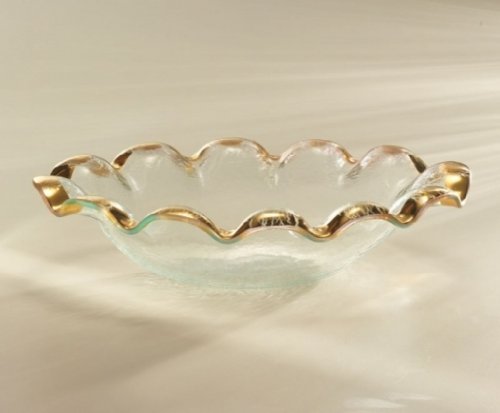 Annieglass Roman 12 X 8.25 In. Oval Serving Bowl Gold Ruffle