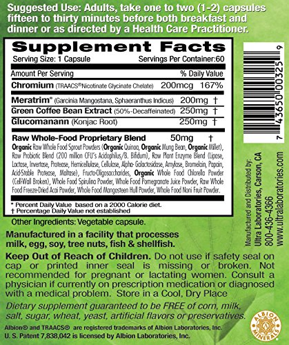 -. Feature : Caffeine & Stimulant Free Weight Loss Health / 60 Vegetable Capsules / Raw Whole-Food Based Formula with Probiotics & Enzymes. Vegan. / Dietary supplement guaranteed to be FREE of corn, milk, salt, sugar, wheat, yeast, artificial flavors or preservatives.
