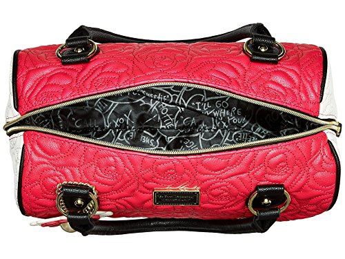 Studio : Betsey Johnson Publisher : Betsey Johnson Binding : Accessory Product Description You are sure to fall in love with this sumptuous, must-have medium satchel shoulder bag for die-hard Betsey fans! Features: Top zipper closure with flower quilted exterior, front signature hardware and flower key chain, Double rolled top handles with 7" inch shoulder drop, fully lined interior with multi functional zip and 2 slip pockets. It makes a feminine addition to your handbag collection. 0