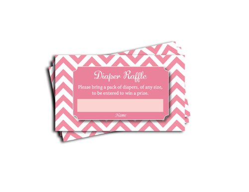 Pink Chevron Printed Diaper Raffle Tickets Girl Baby Shower Games (50-cards)