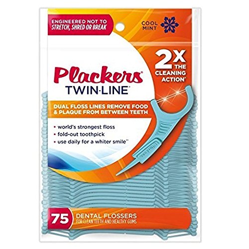 Plackers Twin Line Whitening Flossers, 75 Ct (Pack of 2)