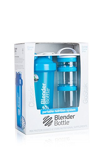 BlenderBottle Combo-Pack: (1) 28 Oz Classic Bottle + (1) GoStak Starter 3PAK (Aqua)