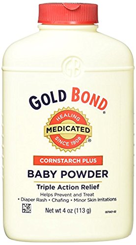 -. Binding : Health and Beauty -. Brand : Gold Bond -. Feature : # Gold Bond cornstarch plus medicated baby powder helps prevent and treat diaper rash. / # It helps prevent and treat diaper rash. It also helps relieve diaper rash with a combination of three. / Change wet or soiled diaper promptly, cleanse the diaper area and allow to dry. / Carefully shake powder into the hand or diaper and apply to diaper area. / Apply powder close to the body, away from the childs face. Apply as often as necessary, with each diaper change, especially at bedtime or anytime when exposure to wet diapers may be prolonged. -. Label : CHATTEM LABS -. Manufacturer : CHATTEM LABS -. MPN : 459826 -. PartNumber : 459826 -. ProductGroup : Health and Beauty -. ProductTypeName : HEALTH_PERSONAL_CARE -. Publisher : CHATTEM LABS -. Studio : CHATTEM LABS -. Title : Gold Bond Cornstarch Plus Baby Powder - 4 Oz