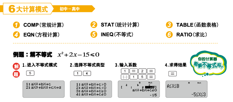 FX-95ES PLUS拥有强大的6大计算模式。