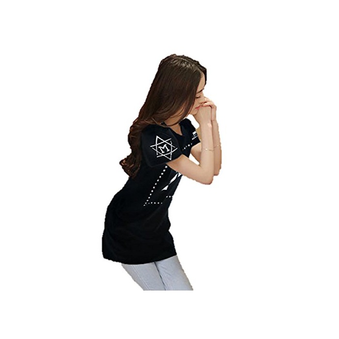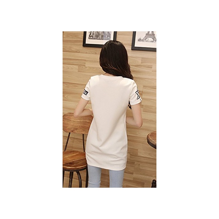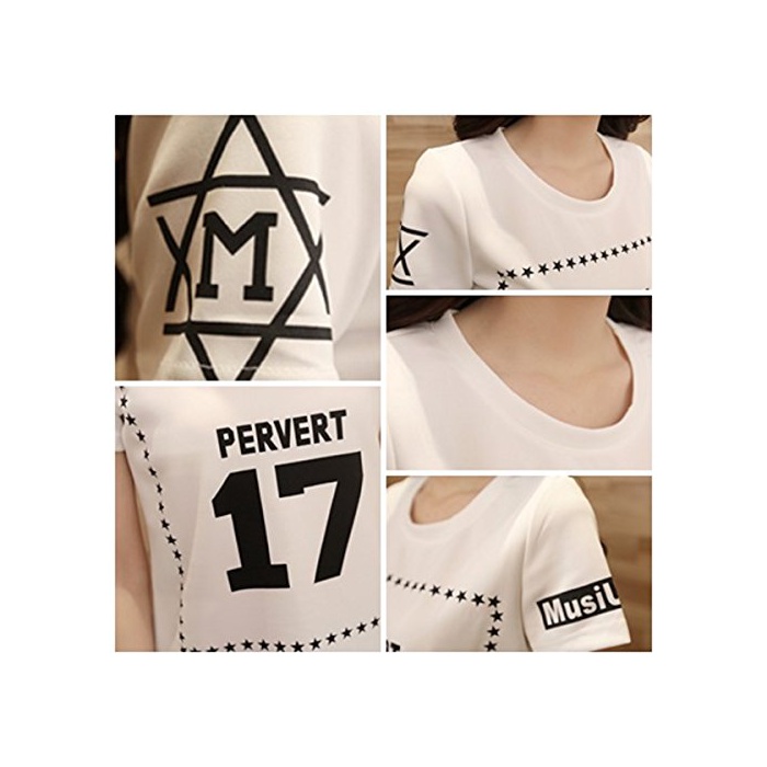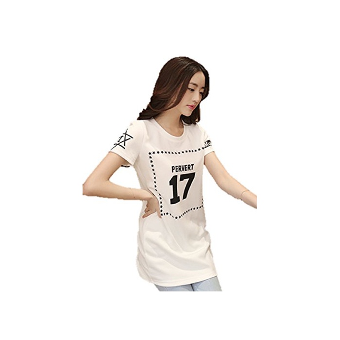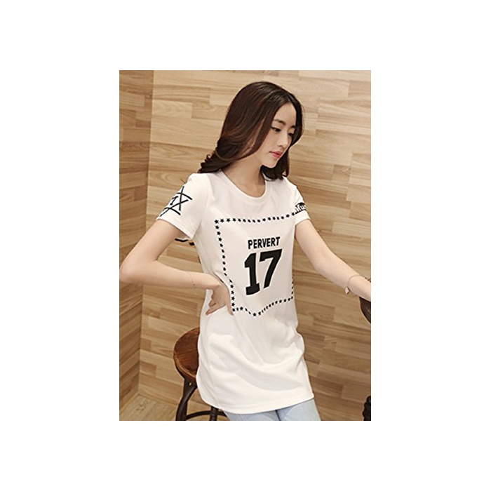 Happy smile life (연꽃(향기백련)《루》) Hasle 레이디스 반소매 T 셔츠 큰 넘버 로고 톱스 캐주얼 모두 봄과 여름성 흑백