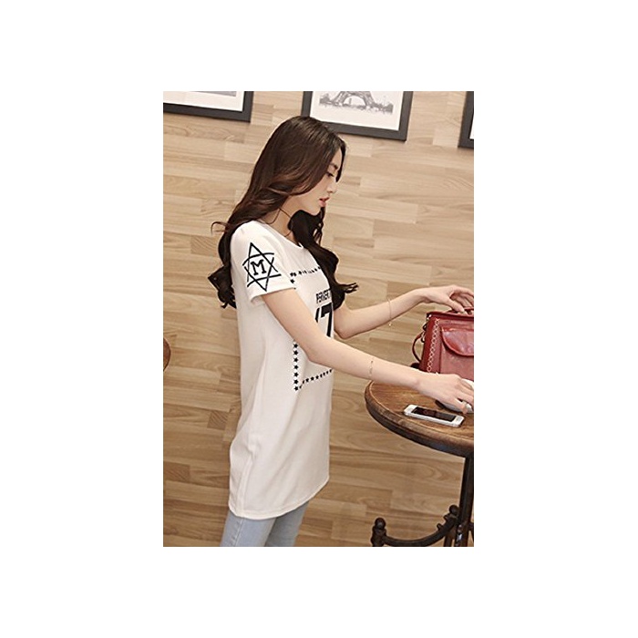 원본상품명: (ハスル) Hasle レディス 半袖 T シャツ 大きめ ナンバ ロゴ トップス カジュアル おそろい 春 夏 星 白