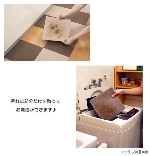 | 撥水加工を施している薄くてつまずきにくいタイルマットです。マットの裏面が床にピタッと吸着するのでズレません。掃除機をかけても吸い上がらず、楽にお掃除できます。ハサミでカットできるのでお好きな場所に敷いていただけます。また、汚れた部分のみ洗濯できるのでとってもラクラク。 |
