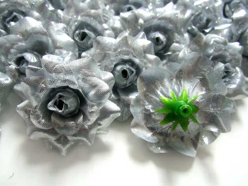 - Feature : Silk rose heads - Artificial flowers for wedding Home decoration or make your hair clips Headbands / You will receive (100) Silver Rose Heads (No Clips) with Florist Brand package individually as shown. / Mini Size, Each head is approximately 1.75 inches across / Made from Synthetic Silk polyester And Made in Singapore. / Good Ideas for embellishing weddings, parties, hair clips, headbands, hats, clothes, bows, craft work.
