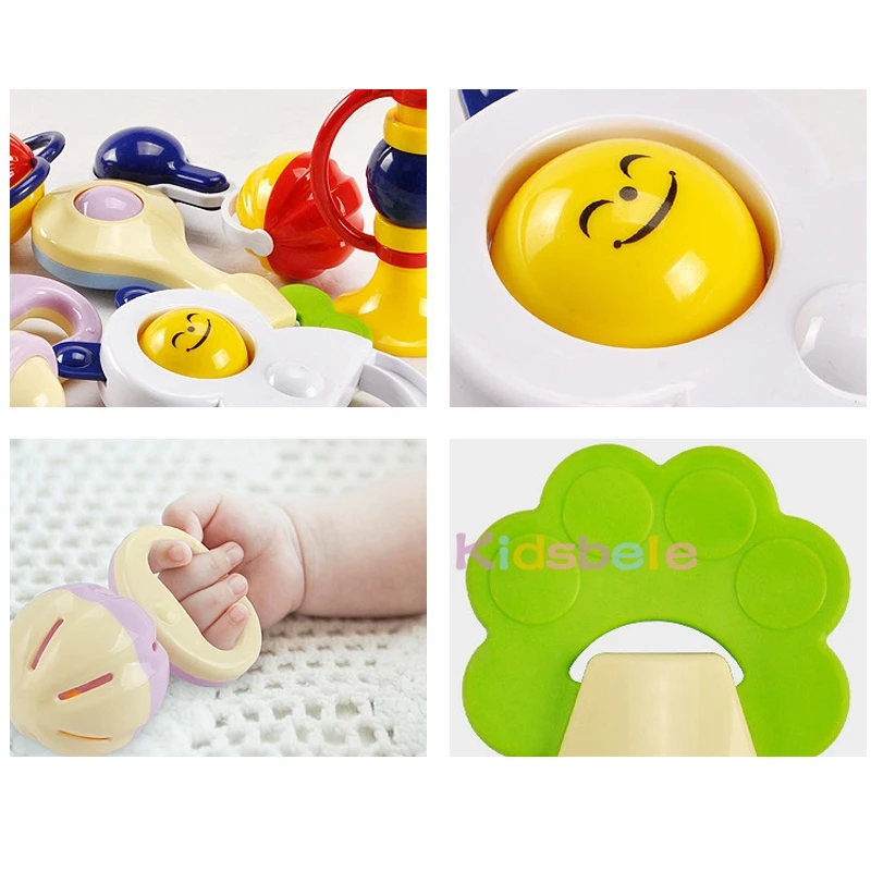 Baby Toys 5PCS Plastic Hand Jingle Shaking Bell+Kidsbele Infant Soft Bibs Newborn Baby Toys 0-12 Mnoths Teether Rattles Toys