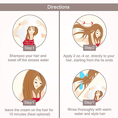 -. Feature : Professional Hair Conditioning Treatment: Repairs, restores, and strengthens weak, damaged, and overprocessed hair to restore a healthy look while promoting natural hair growth / Nourishes Hair Effectively: With the unique combination of Keratin protein and Keratin amino acids, Aloe vera gel. Deeply conditions, hydrates, and moisturizes hair giving it a soft silky texture and giving it a brilliant shine / Highest Quality Cosmetic Grade Argan Oil, rich in Essential Vitamins and Nutrients. Highly effective for all hair types including Permed, Natural, and Curly Hair. Improve hair manageability and elasticity / Sodium and Cruelty Free: For external use only. Quality tested to ensure safety, paraben free and cruelty free. No test on animals / Transform your Hair: A healthier, smoother and shinier hair will make you more adorable. We offer free 30 days return and a free 12 months warranty. Purchase with confident