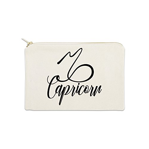 Capricorn Zodiac Sign 12 oz Cosmetic Makeup Cotton Canvas Bag - (Natural Canvas)