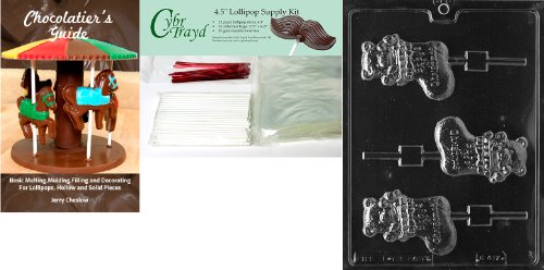 Cybrtrayd Baby's First Christmas Lolly Chocolate Mold with Chocolatier's Bundle of 25 Lollipop Sticks, 25 Cello Bags, 25 Red Twist Ties and Chocolatier's Guide