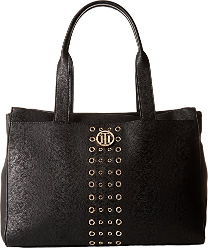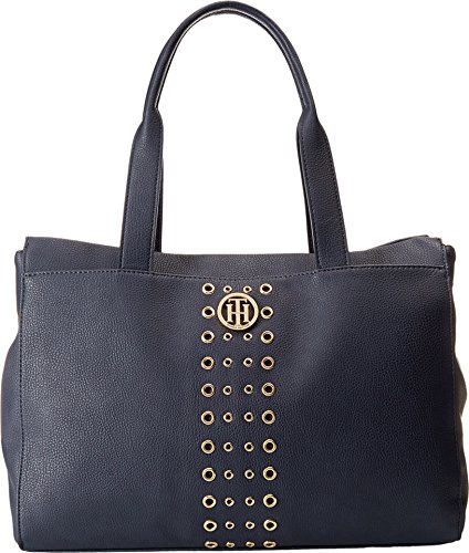 Tote bag with gold eyelet detail on front and interior divider