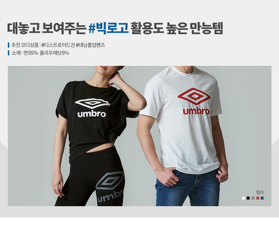 디자인 ▶ 전면부 엄브로 빅로고 포인트의 심플한 레귤러핏 반팔 티셔츠입니다.
