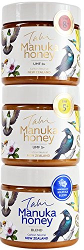 - Feature : 3 JAR PACK OF THE WORLD'S BEST MANUKA HONEY: 1 jar UMF 8+, 1 jar UMF 5+ and 1 jar Manuka Blend / RAW MANUKA HONEY: Unpasteurized and minimally filtered for maximum goodness. Contain high levels of natural pollens with no added sugar, water or preservatives / ETHICAL BEEKEEPING: The bees roam freely in native bush and are not exposed to orchard pesticides, fed sugar syrup or other chemicals / NATURE IS OUR BUSINESS: Purchasing Tahi manuka honey supports active conservation in Pataua, New Zealand. Restoring wetlands, sand dunes and planting native trees. More habitat, more birds, happier world / UMF HONEY ASSOCIATION LICENSEE: number 2035 guarantees authentic manuka honey