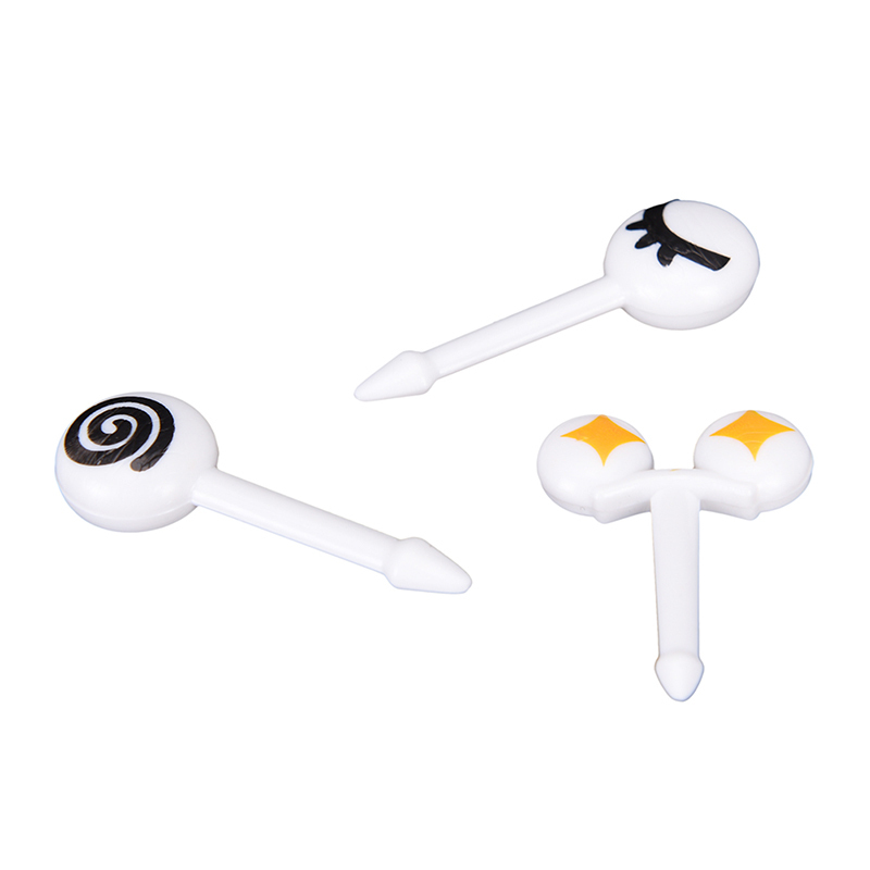 style 02Description:Feature:100% brand new and high quality Cartoon Eye Food Forks Fruit Picks.Perfect for fruit, pastries, desserts, snacks, easy to use, convenient health.It is not only a practical friut fork set, but also a beautiful home decor.It can withstand temperature range: -20 ~ 80 Degrees Celsius.It will be the good choice for kids gifts.Material: PPColor: As picture shownSize(Approx ): 3-4cmPackage include: 10 PCs/ Lot