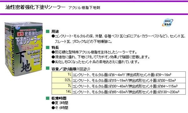 コンクリート・モルタルの床、外壁、各種ベスト瓦(コロニアル・カラーベストなど)、セメント瓦、スレート瓦、ブロックなどの下地補強にお使いいただけます。 製造国:日本 素材・材質:アクリル樹脂下地剤 内容量:3.2L※お届け地域により、別途運賃がかかる場合やお届けできない場合がございますので、お問い合わせ下さい。