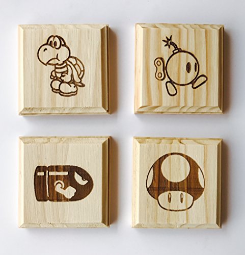 -. Feature : Made from hand cut premium pine wood / Made in small batches by Brindle Southern Designs in Sanford, FL / Laser Engraving is permanent and will not fade. Great for protecting surfaces from beverages. / Includes 4 Coasters / Super Mario Bros.