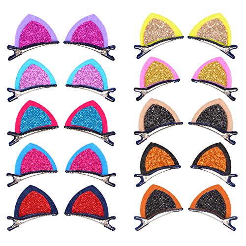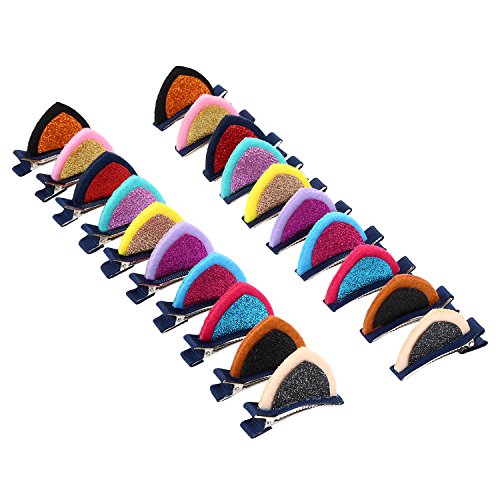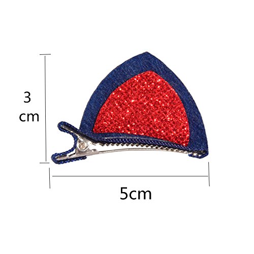 10 Pairs cat ear barrette cat hairpins ear hair clip hair accessories for girls baby kids, 10 colors Cute cat ear barrette: The ear shaped barrette can make you look very cute and special, this adorable hair barrette is fine accessories for newborns, toddlers, baby girls, little girls, teen girls and women. Suitable for parties, cosplay, ceremonies, celebrations, balls and daily wearing. This kind of hair barrettes has alligator clip, can hold your hair well and stay in hair without slipping, and the clip is double sided, both decorative and applicable. Specifications: Cat ear size: approx. 3 x 4 cm/ 1.18 x 1.57 inches Clip length: approx. 5 cm/ 1.97 inches Material: fabric and metal clip Color: yellow, purple, black, rose, lake blue, light blue, navy blue, pink, brown and off-white Quantity: 10 pairs Package includes: 10 Pairs of cat ear barrettes 0